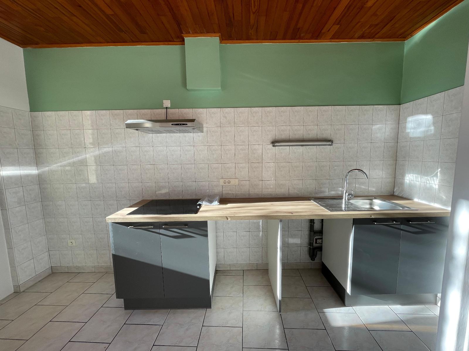 Séjour de 21m², avec cuisine semi équipée neuve (plaque, hotte aspirante), 2 chambres d'environ 9m²,