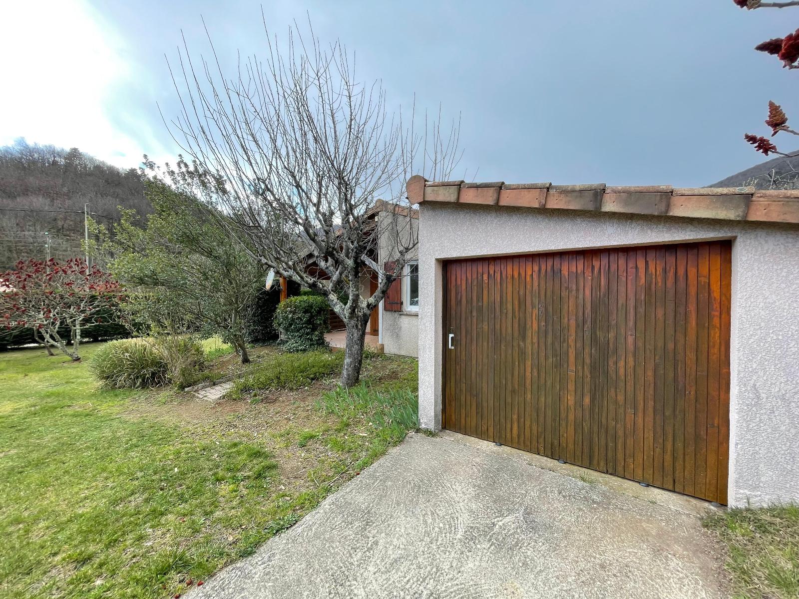 Un terrain privatif clôt sur les abords, un garage.