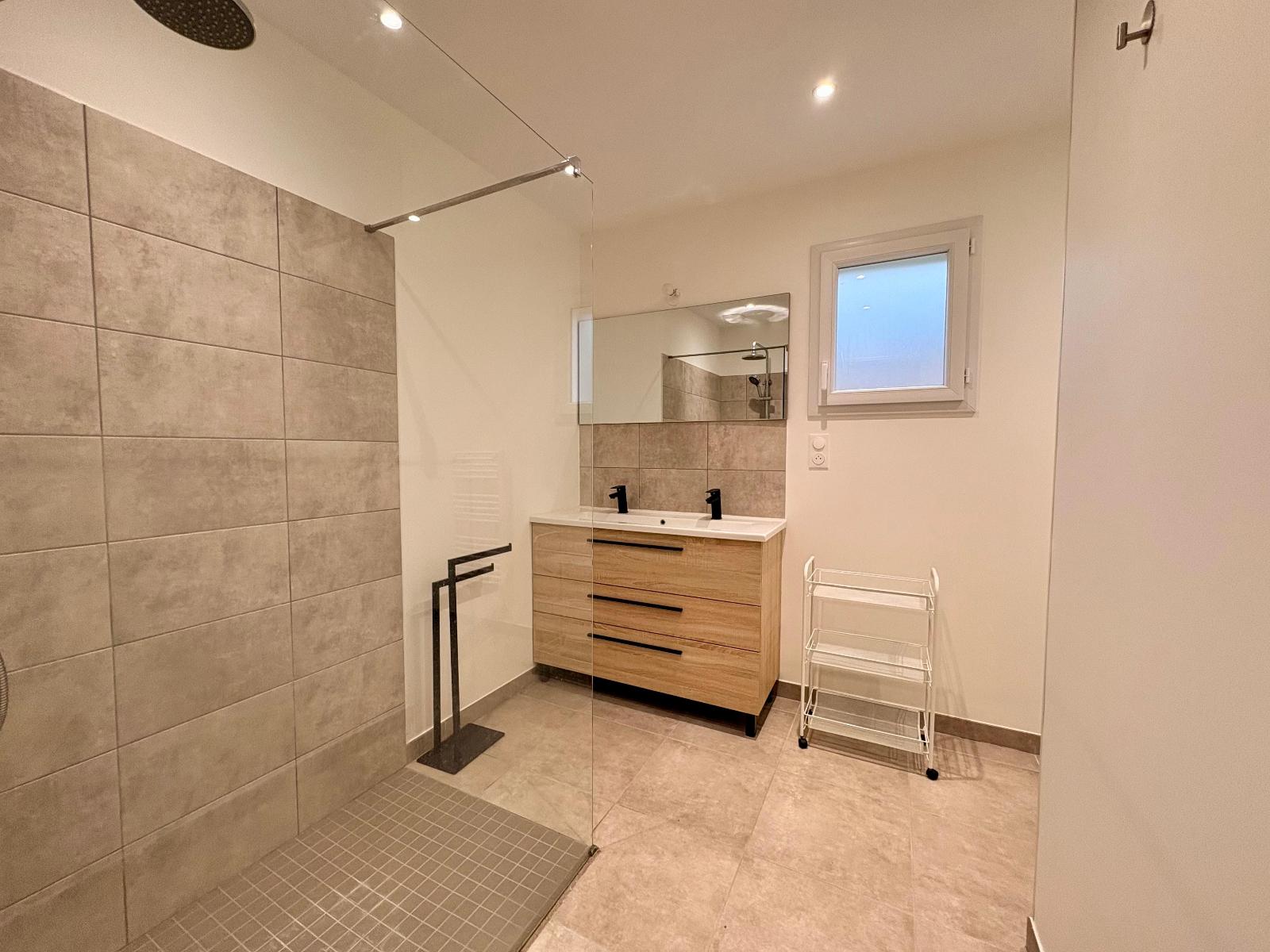Salle d'eau avec douche et wc séparé. Lumineuse maison et récente.