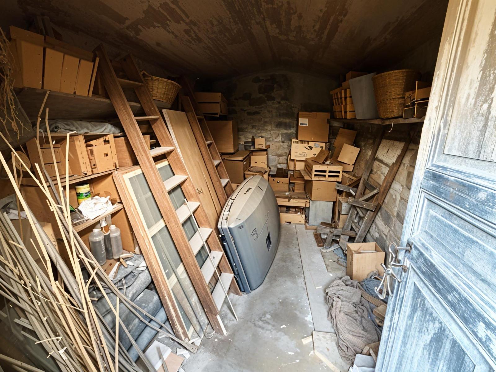 *Espace de stockage et clapier sous l'escalier commun desservant le jardin, les caves et l'atelier