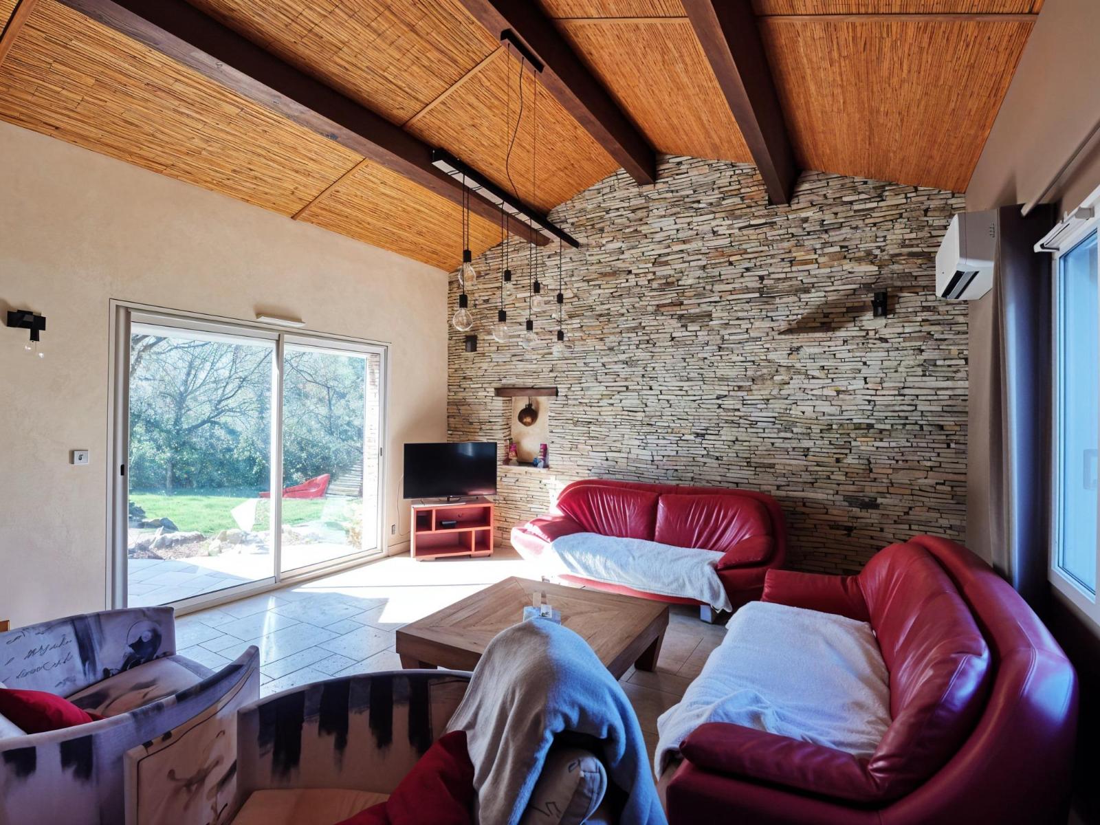 - Un grand salon séjour cuisine de 88m² donnant sur une large terrasse en partie couverte.