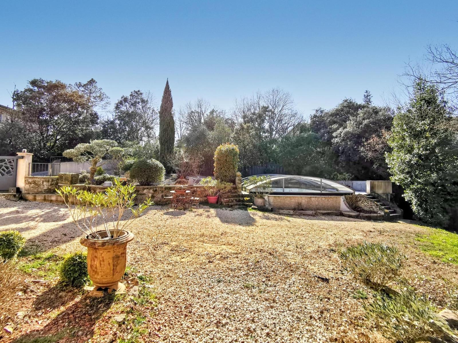 Piscine avec abri d'hivernage, un double garage indépendant neuf, portails électriques
